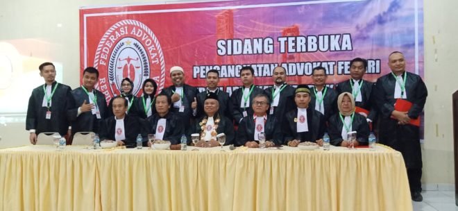 PALEMBANG, Mattanews.co – Dewan Perwakilan Pusat (DPP) Federasi Advokat Republik Indonesia (FERARI) Sumatera Selatan (Sumsel) menggelar sidang terbuka pengangkatan 12 advokat baru, di Aula Universitas Palembang, Jalan Darmapala, Kecamatan Ilir barat I, Selasa (18/02/2020) malam.