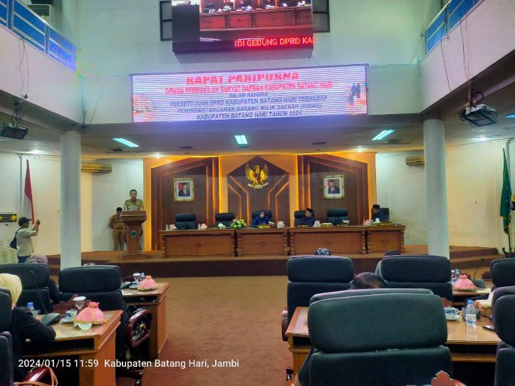 Dalam rapat tersebut, dibahas Persetujuan DPRD Batanghari terhadap pemindah tanganan barang milik daerah (Hibah) tahun 2024.