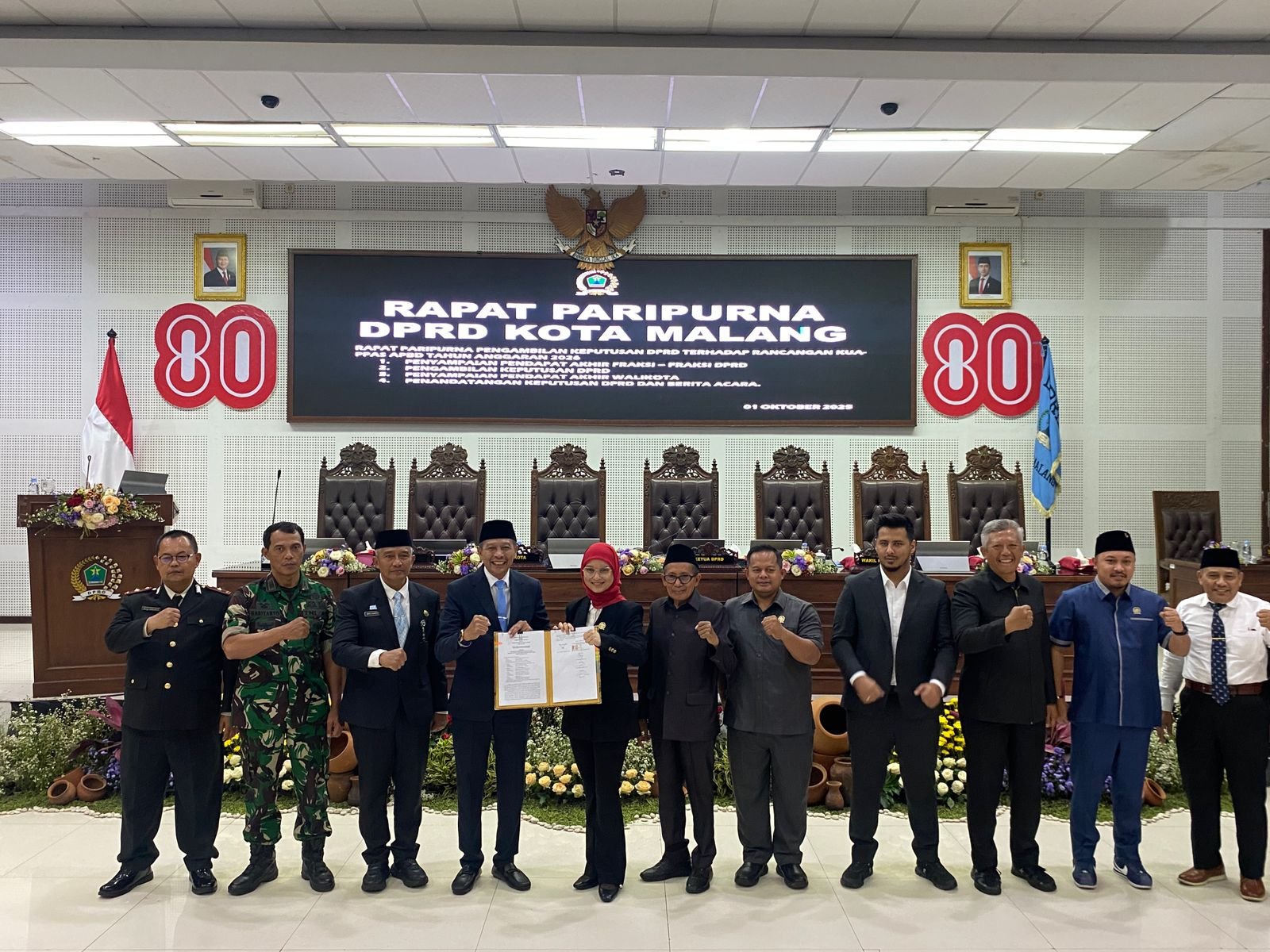 KUA-PPAS APBD Tahun Anggaran 2025 disahkan DPRD Kota Malang ditandai dengan penandatanganan berita acara antara Wali Kota Malang, Dr. Ir. Wahyu Hidayat, MM, dengan pimpinan DPRD Kota Malang dalam rapat paripurna.