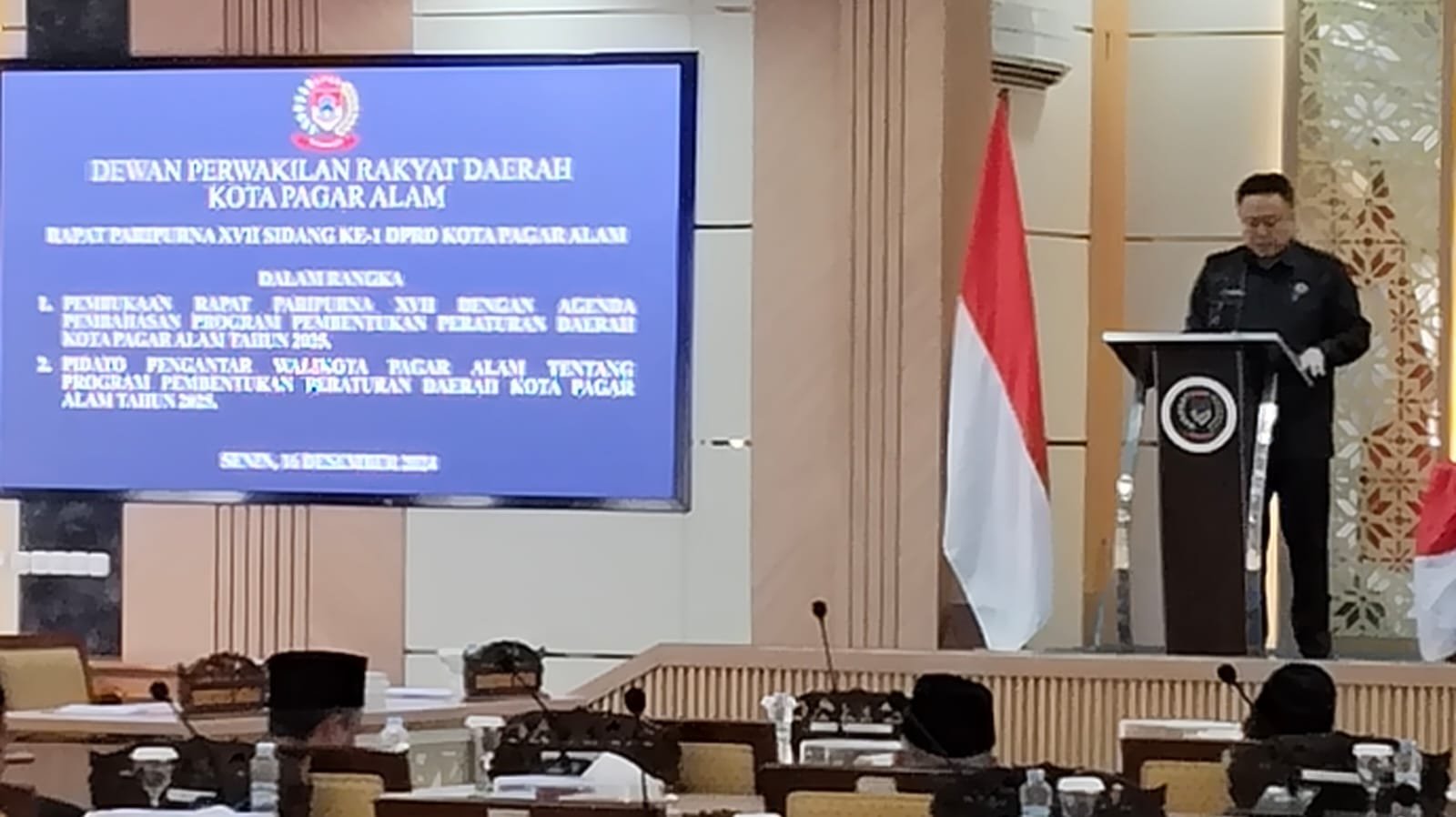 MATTANEWS.CO, PAGAR ALAM – DPRD Kota Pagar Alam gelar Rapat Paripurna XVII sidang ke 1 , di ruang Sidang Utama DPRD Pagar Alam, Senin (16/12/2024).