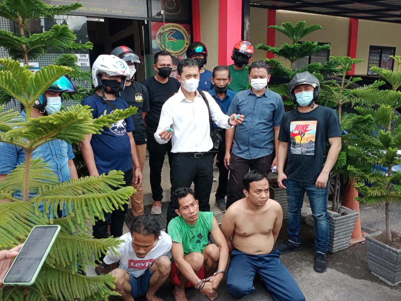“Dari lokasi kami amankan tiga pelaku yang diduga kuat terlibat dalam bisnis narkoba. Salah satu dari mereka sempat bergulat dengan anggota,” jelas Kapolrestabes Palembang, Kombes Pol Irvan Prawira Satyaputra melalui Kasat Reserse Narkoba Polrestabes Palembang, AKBP Andi Supriadi, saat diwawancarai awak media.
