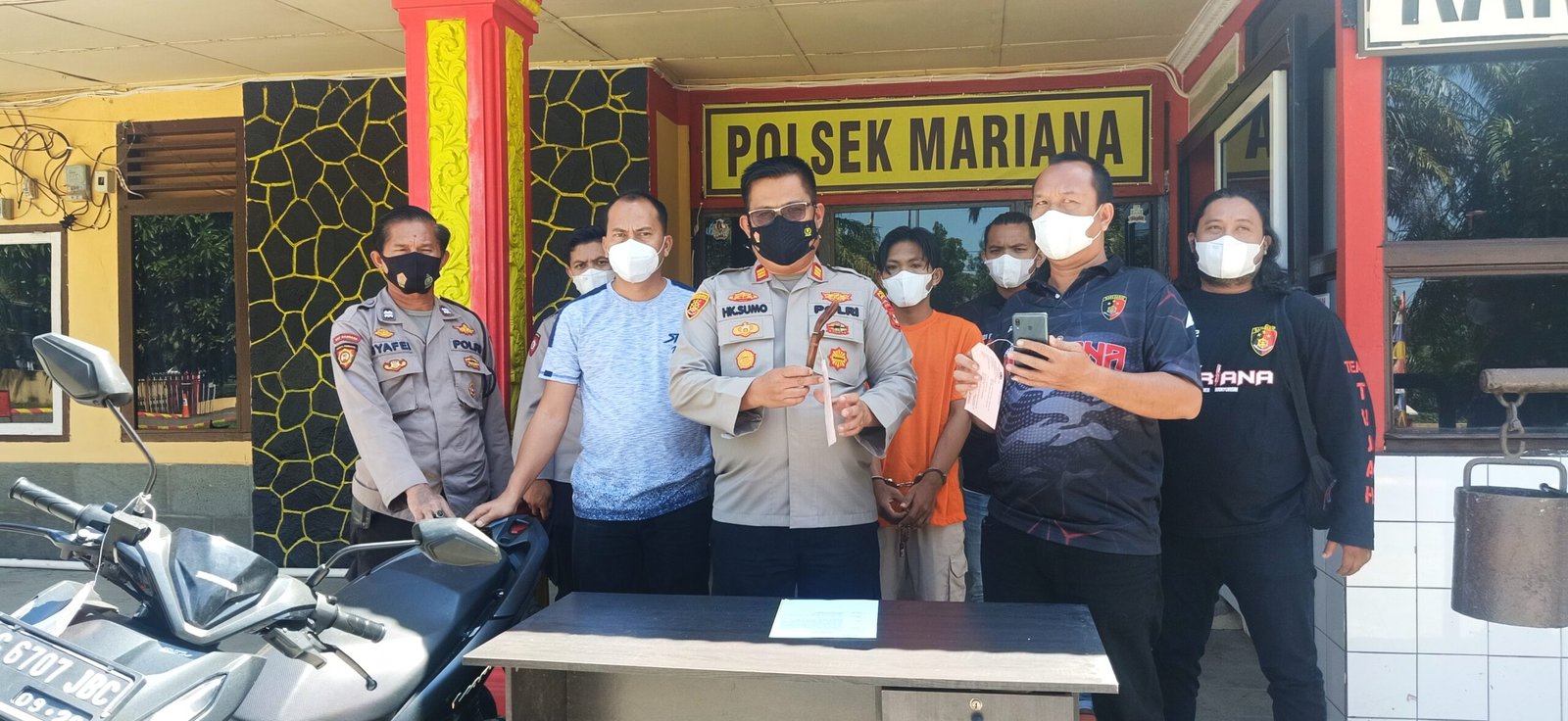 “Tersangka ini spesialis begal dan sudah dua kali melakukan aksi begal di wilayah hukum Mariana. Beberapa kali beraksi tersangka bersama temannya, RO (DPO), yang kini masih kami kejar,” papar Kapolsek Mariana, AKP Halim Kesumo, didampingi Kanit Reskrim, Bripka Guntur, saat press release.