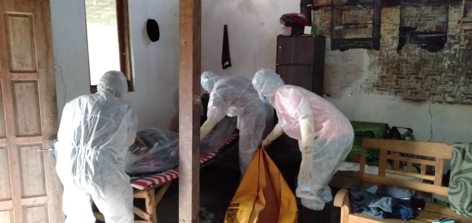 Petugas dibantu perangkat desa dan warga mengevakuasi korban selanjutnya dimakamkan di tempat pemakaman umum desa setempat.