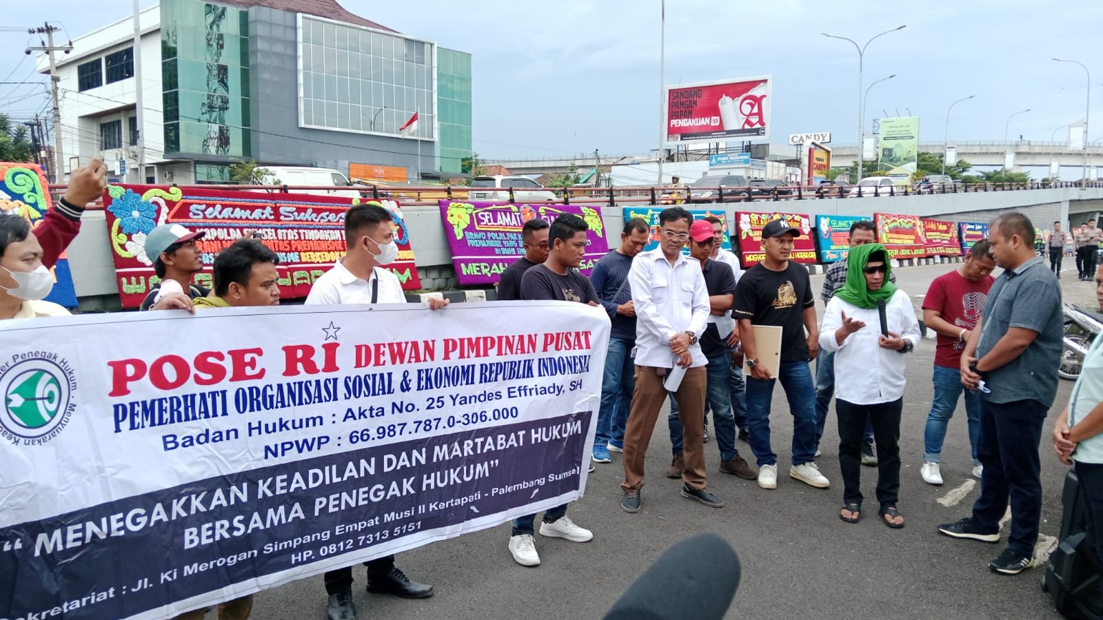 “Lihat saja dari banyaknya kiriman karangan bunga disepanjang jalan, menuju Polda Sumsel,” ujarnya.