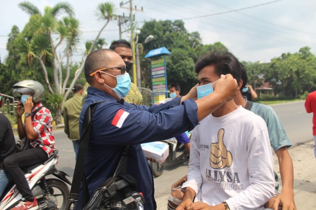 “Sebanyak 1000 masker yang hari ini kepada berikan kepada masyarakat khususnya kepada pengguna jalan,” ujar Ketua PWI Sergai.