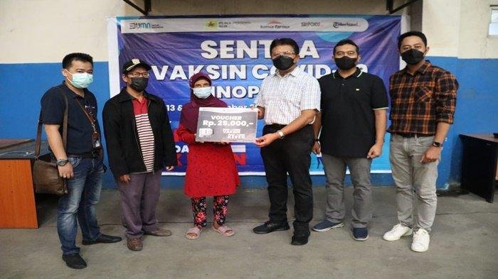 Dalam sentra vaksinasi kali ini, masyarakat tidak hanya mendapatkan vaksin tetapi juga akan mendapatkan souvenir berupa voucher token listrik masing-masing sebesar Rp 25.000,-.