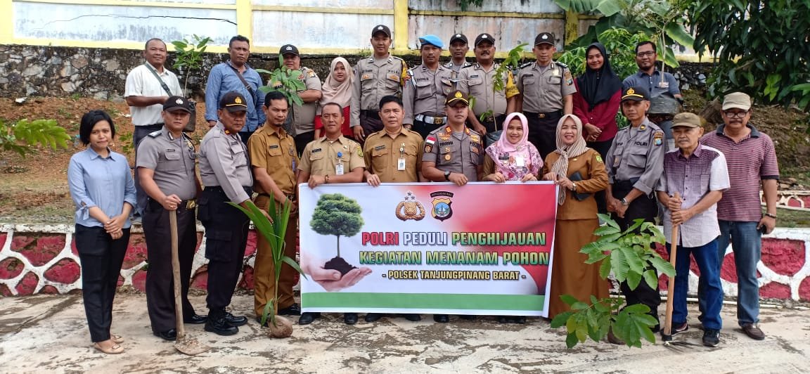TANJUNGPINANG, KEPRI, Mattanews.co – Guna mendukung program Polri dalam hal penghijauan, Polsek Tanjungpinang Barat, AKP Firuddin didampingi Camat, M Yatim Mustafa, Lurah Kelurahan Bukit Cermin, Babinsa, pegawai kelurahan se – Kecamatan Tpi Barat dan para tokoh-tokoh masyarakat Tanjungpinang Barat serta para pers Polsek Tpi Barat, melakukan penanaman pohon di seputaran lahan gersang pada mako Polsek Tanjungpinang Barat, Selasa (07/01/2020).
