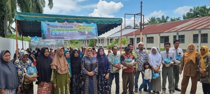 Dimana pada kegiatan Baksos tersebut, Yayasan Pendidikan H.Ahmad Sanusi menyalurkan paket sembako sebanyak 100 paket kepada masyarakat yang membutuhkan di lingkungan sekitar Negeri Lama Seberang.