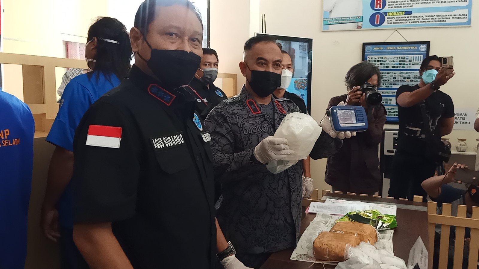 “Awalnya kita menangkap dua kaki tangan bandar, M Irfan Bakri, Ridwan di Lorong Bogenvile Kenten Laut Kelurahan Talang Kelapa, Kabupaten Banyuasin, pada Senin (21/2/2022) pukul 14.30 WIB. Dari pengeledahan anggota kita, ditemukan 14 bungkus sabu seberat 108 gram yang tersimpan dalam kotak rumah tersangka,” jelas Kepala BNNP Sumsel, Brigjen Pol Djoko Prihadi didampingi Kabid Pemberantasan, Kombes Agus Sudarmo, saat press release.