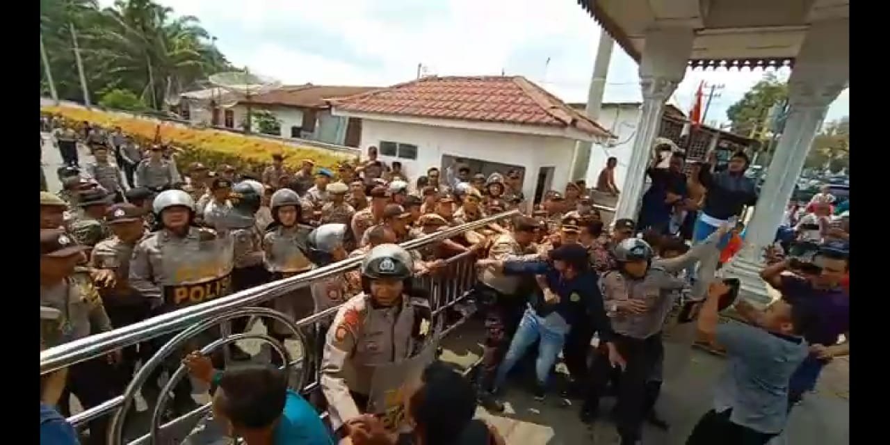 Pagar betis pengamanan yang tergabung dari Sat Pol PP dan personel Polres Labuhanbatu tidak tertembus oleh para pengunjuk rasa. Beralih ke pintu gerbang keluar gedung DPRD, merasa kesal tidak ditanggapi, massa mendobrak masuk dengan mendorong dan menendangi pintu gerbang keluar halaman gedung DPRD Labuhanbatu.
