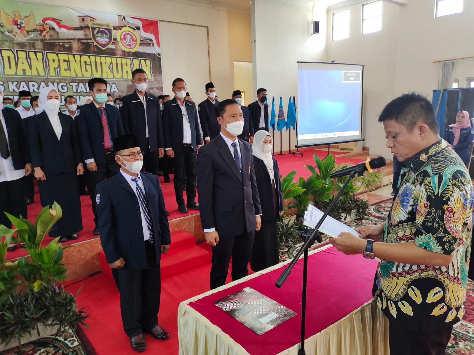 MATTANEWS.CO, OKU TIMUR – Bupati OKU Timur, Lanosin (Enos) mengukuhkan dan melantikan pengurus Karang Taruna periode 2021-2026, di Gedung Graha Tani, Selasa (28/12/2021).