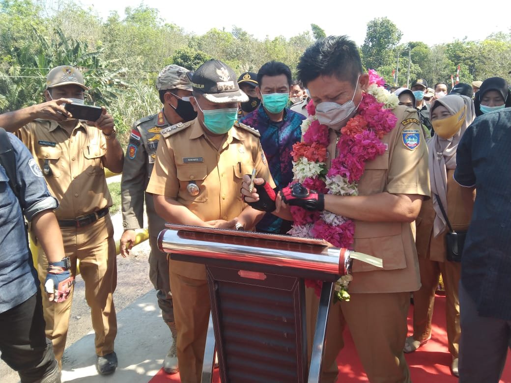 MATTANEWS.CO, OKUT – Kehadiran Bupati OKU Timur Lanosin disambut antusias oleh warga masyarakat di kecamatan Jayapura. Ia meresmikan jembatan Penghubung Desa Mendah dan Desa Vila Masin yang telah selesai Pembangunannya, Senin Pagi (05/07/2021).