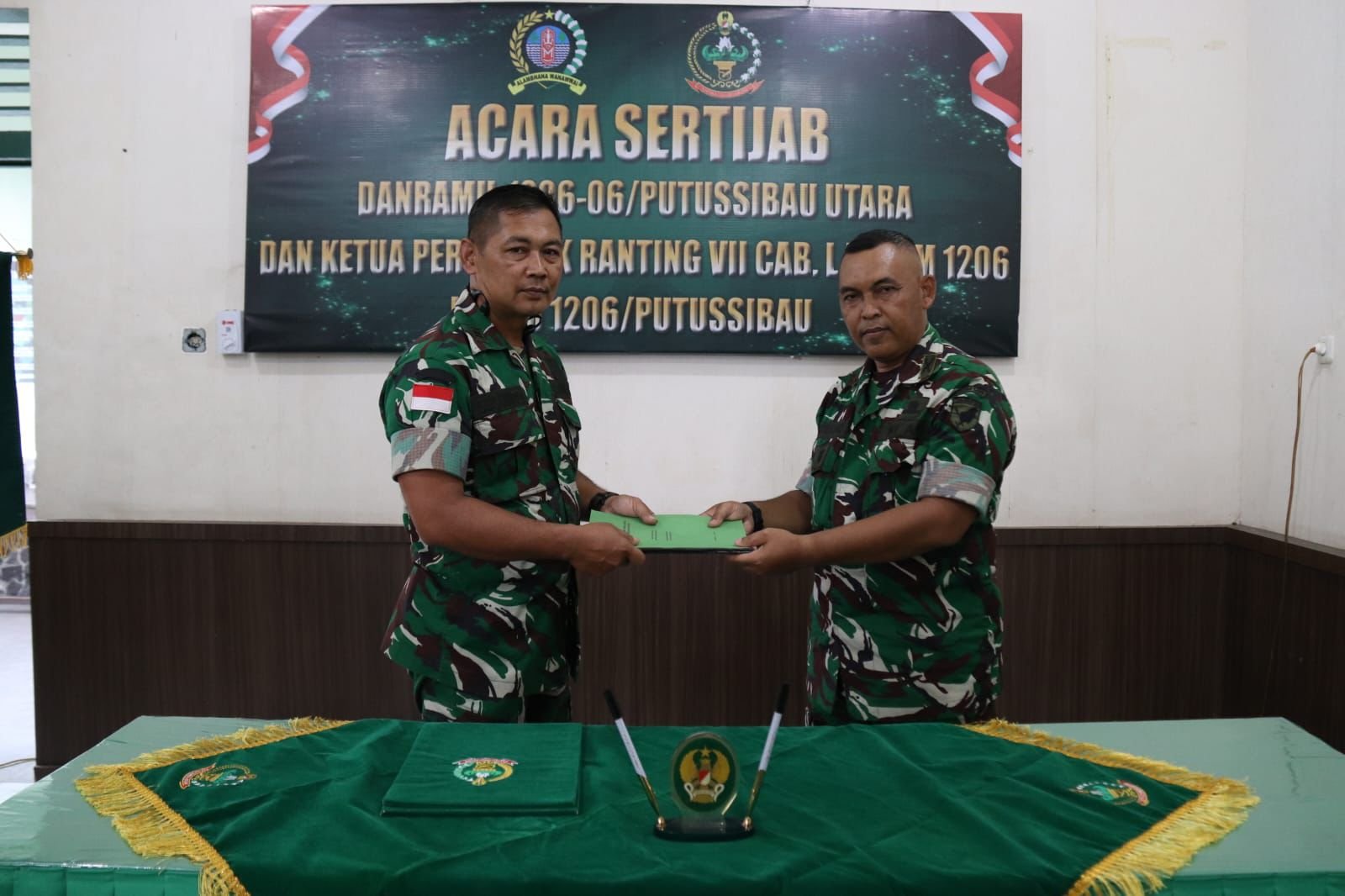 Prosesi sertijab berlangsung khidmat dan penuh makna. Jabatan Danramil 1206-06/Putussibau Utara diserahterimakan dari pejabat lama, Kapten Arm Supratno, kepada pejabat baru, Lettu Inf Sugianto.