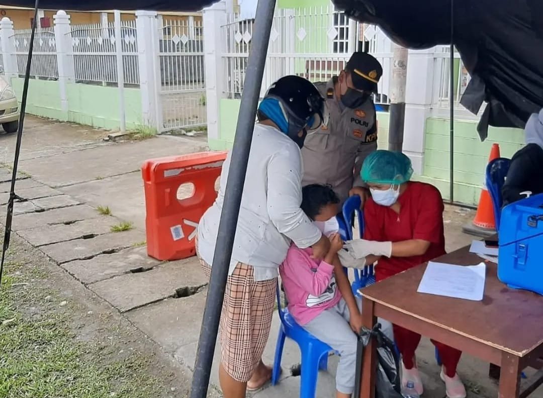 Pelaksaan Vaksinasi oleh Polres Fakfak pada gerai Vaksin depan puja sera