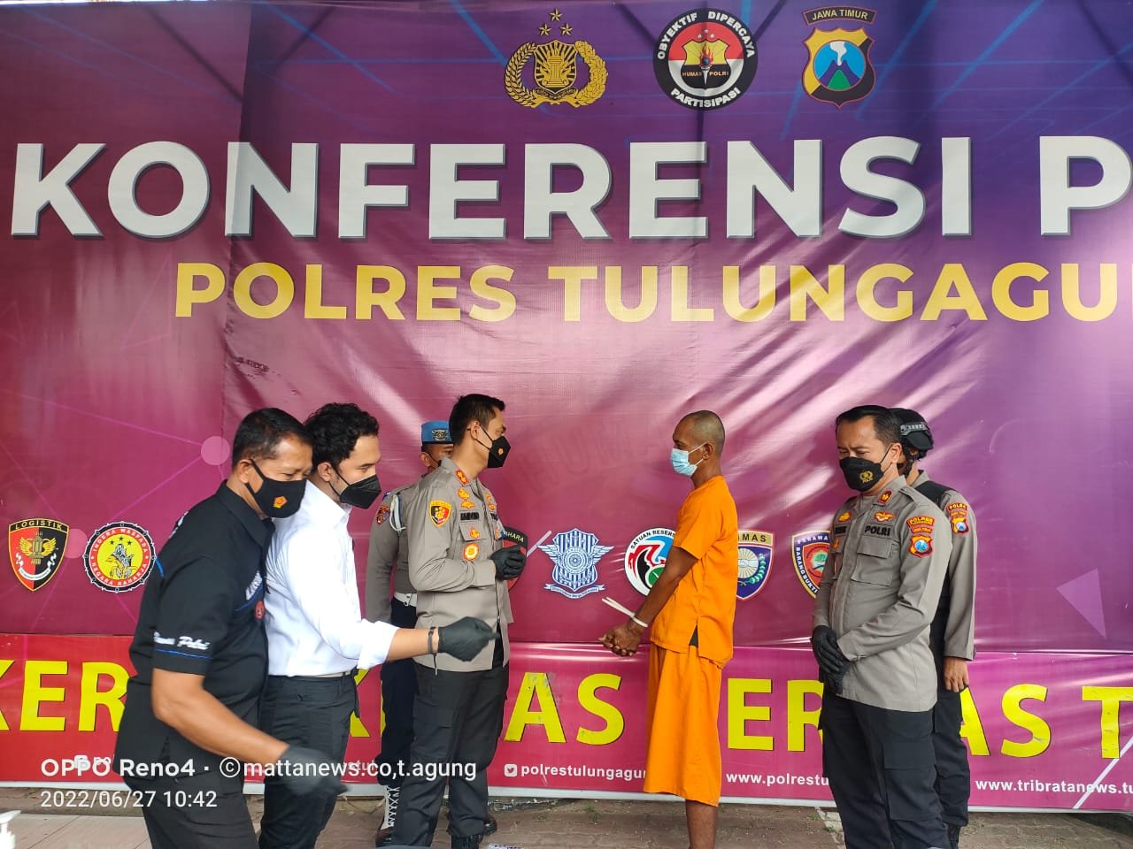 Hal itu diungkapkan dalam konferensi pers ungkap kasus kekerasan dalam rumah tangga yang mengakibatkan korban meninggal dunia bertempat di halaman sebelah barat Mapolres Tulungagung Senin (27/6/2022) Pagi.
