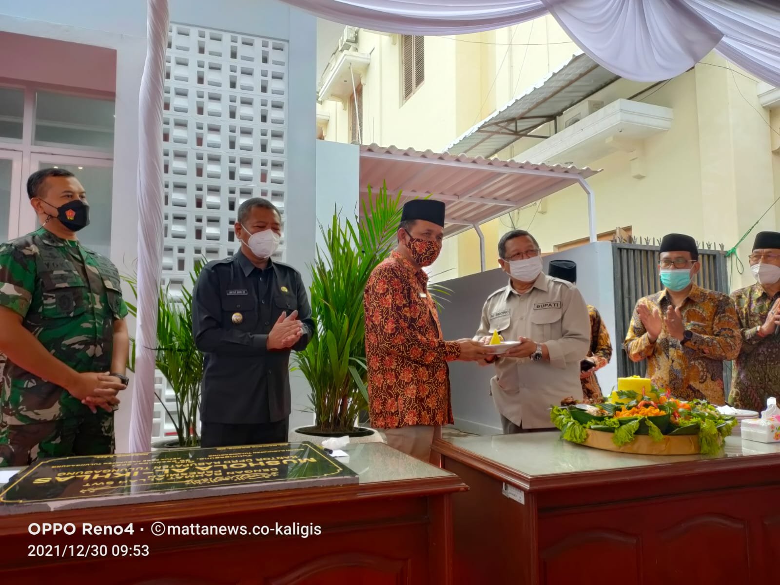Pantauan mattanews.co peresmian Musala Al-Ikhlas ditandai dengan pemotongan tumpeng oleh Bupati Tulungagung Drs. Maryoto Birowo, M.M., didampingi Wakil Bupati H. Gatut Sunu Wibowo, S.E, selanjutnya potongan tumpeng diberikan Ketua DPRD Tulungagung Marsono, S.Sos.