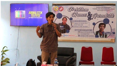 INDRALAYA, Mattanews.co – Jurusan Ilmu Komunikasi Fakultas Ilmu Sosial dan Ilmu Politik (FISIP) Universitas Sriwijaya (Unsri) mengadakan Pelatihan Dasar Jurnalistik TV yang dilaksanakan di Gedung B FISIP Unsri Indralaya. Materi utama dari Pelatihan Dasar Jurnalistik TV ini disampaikan langsung oleh Purwantoro selaku Produser Kompas TV Palembang. Acara tersebut merupakan salah satu dari rangkaian acara Caution (Communication and Education) dan dibuka langsung oleh Omar Madri Bafadhal, S.I.Kom., M.Si. dan dihadiri pula oleh Dosen serta Mahasiswa/i Ilmu Komunikasi FISIP Unsri. Sebanyak 30 mahasiswa/i tercatat sebagai peserta dalam acara pelatihan tersebut.
