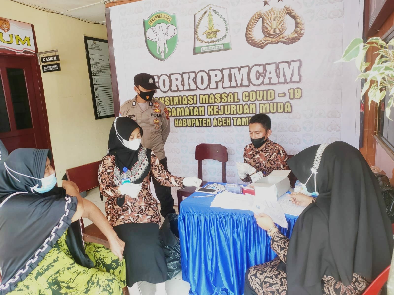 “Alhamdulillah hari ini terlaksana Vaksinasi Massal Forpincam Kejuruan Muda. Mudah – mudahan kegiatan ini dapat tercapai yang sudah ditargetkan,”Ungkap AKBP Imam Asfali.SIK.