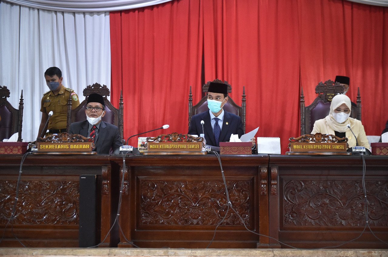 Rapat Paripurna dipimpin oleh Wakil Ketua DPRD Prov. Sumsel; H. Muchendi M, SE, didampingi oleh Wakil Ketua DPRD Prov. Sumsel Kartika Sandra Desi, SH. Dihadiri Pj. Sekretaris Daerah; SA. Supriono, beserta perwakilan OPD dan tamu undangan lain secara langsung maupun virtual.