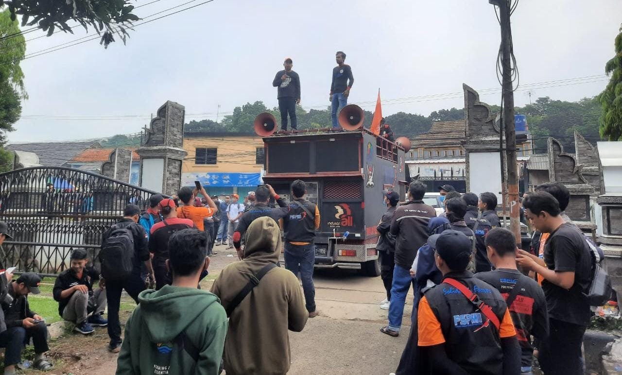 MATTANEWS.CO, PURWAKARTA – Federasi Serikat Pekerja Metal Indonesia (FSPMI) Kabupaten Purwakarta, Jawa Barat (Jabar) melakukan demonstrasi di depan Kantor Dinas Tenaga Kerja dan Transmigrasi (Disnakertrans) Purwakarta, di Jalan Veteran, Kamis (19/05/2022).