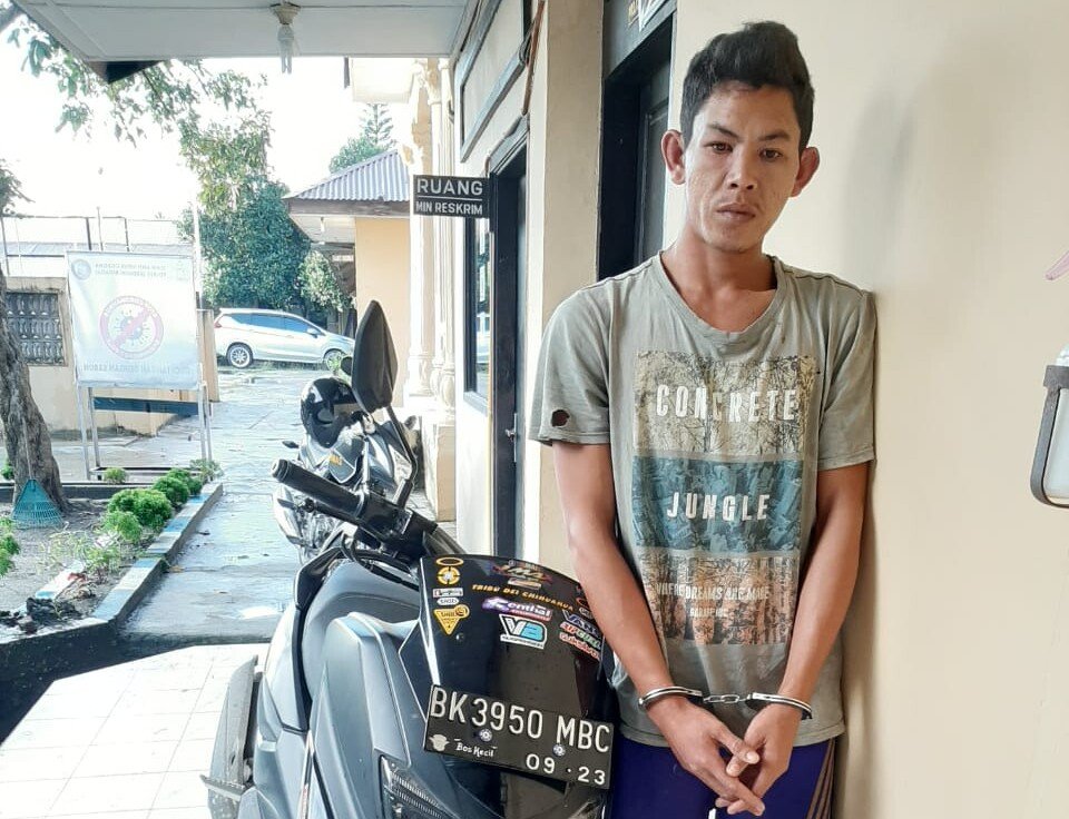 “Saat itu sepeda motor NMAX warna hitam BK 3950 MBC milik korban sedang parkir didepan toko fotocopy,” katanya. Tiba-tiba teman korban melihat sepeda motor miliknya dinaiki tersangka lalu tersangka menghidupkan sepeda motor milik korban.