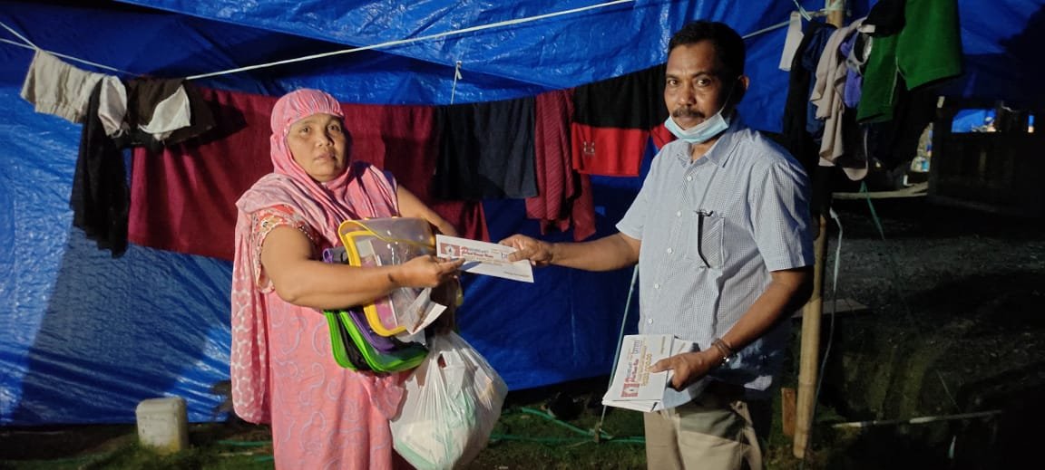 “Ada pun Isi paketnya ada selimut, ada sarung, minyak goreng terus ada sajada empat kodi isi 80 kita bagi semua bagi rata, ada gula pasir, susu dan lain-lain berupa sembako kebutuhan mendesak bagi para pengunsi korban bencana gempa Majene dan Mamuju,” tutur Arifin.