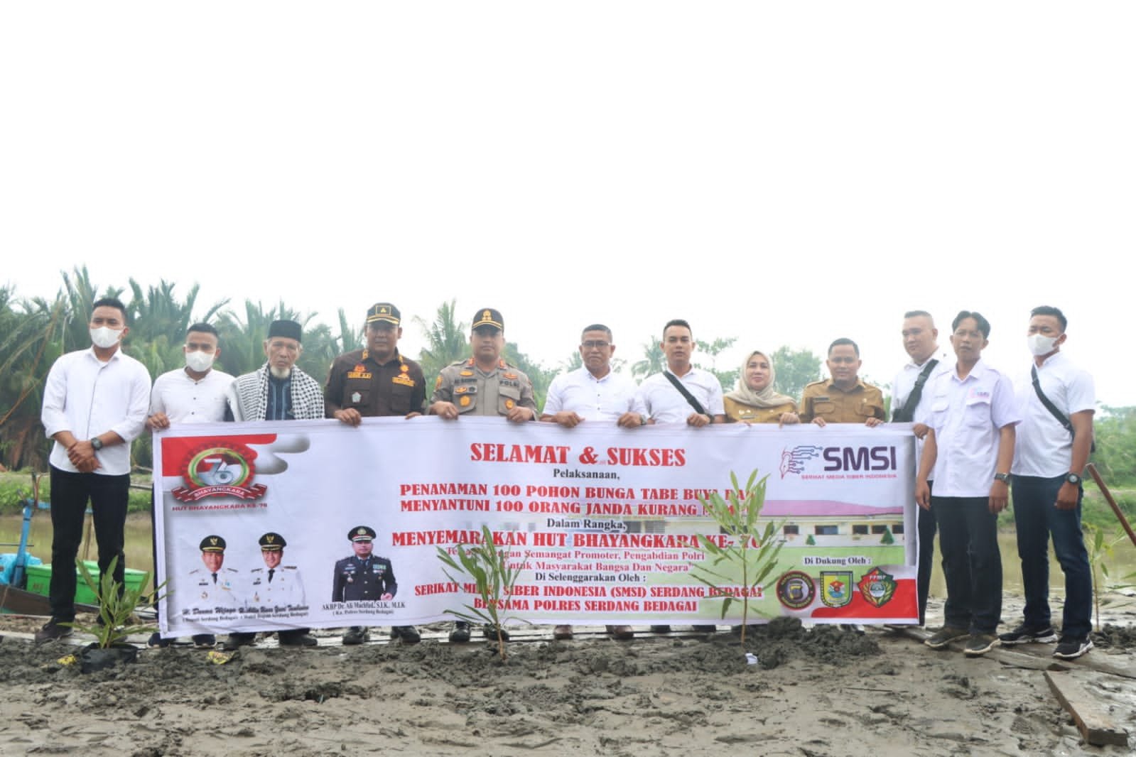 SERGAI, MATTANEWS.CO – Serikat media siber Indonesia (SMSI) Kabupaten Sergai tampak sukses melakukan kegiatan tanam pohon Tabe Buya dan penyerahan sembako untuk para janda yang kurang mampun jelang HUT Bhayangkara ke 76 di dusun 1 Desa Sei Rejo kecamatan Sei Rampah Kabupaten Sergai, Selasa (28/6/2022).