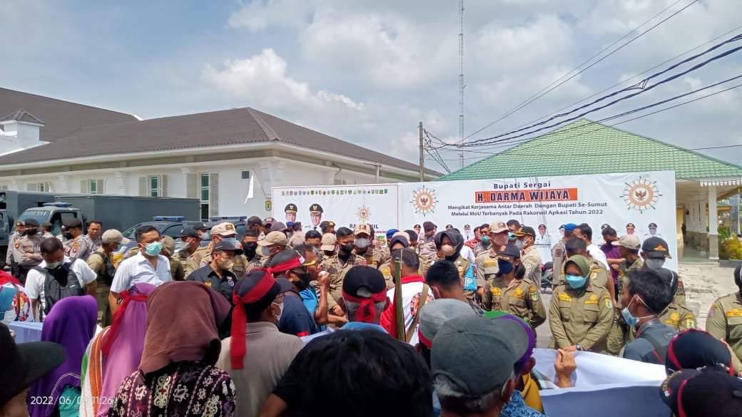 Hal itu ditegaskan Ketua KT RAMPAH, Musanif Saragih dalam orasinya bersama ratusan masa petani saat unjuk rasa di Kantor DPRD Sergai, BPN Sergai dan Kantor Bupati Sergai di kecamatan Sei Rampah, Kamis (9/6/2022).