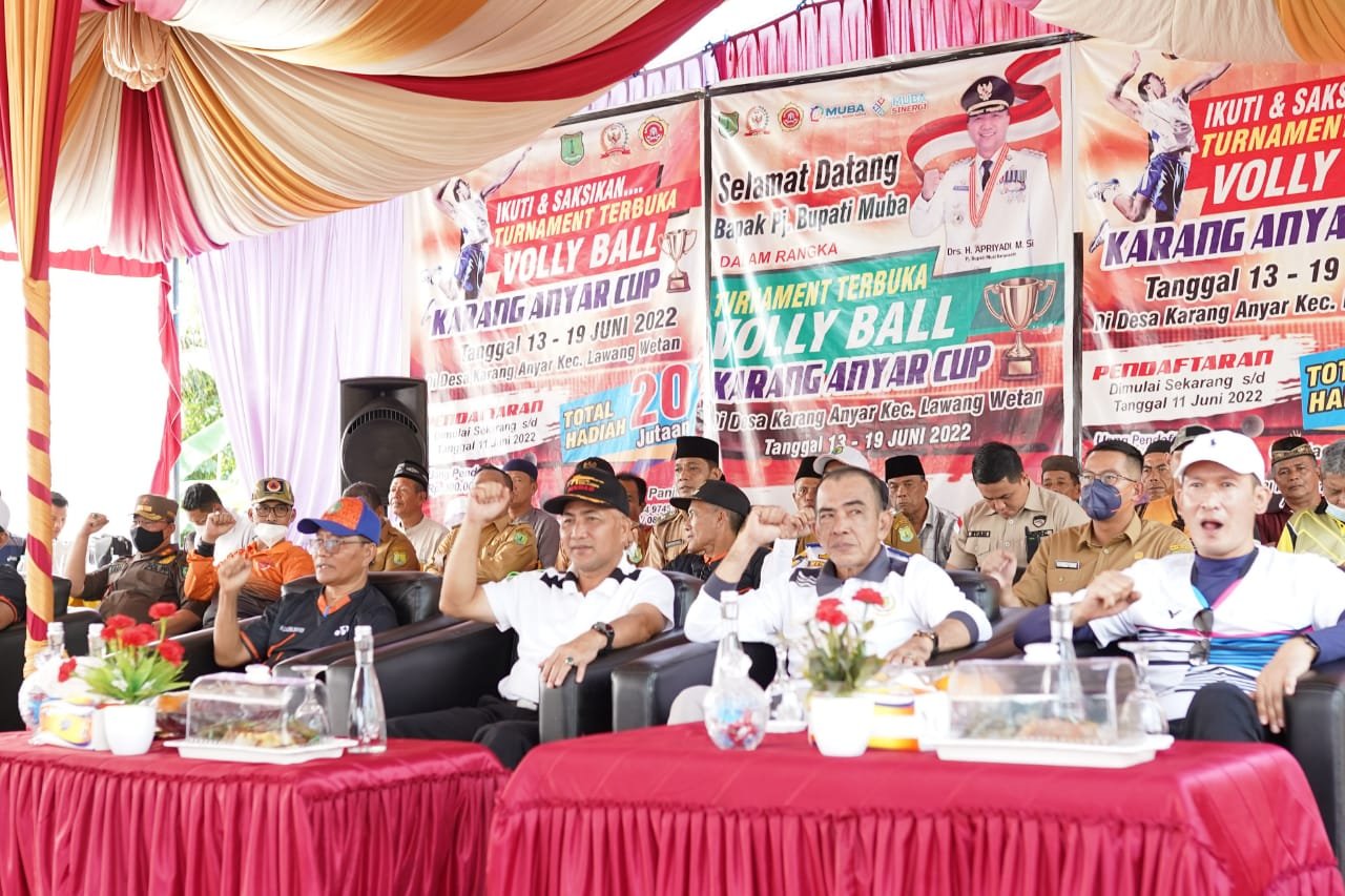 MATTANEWS.CO, MUBA – Penjabat (Pj) Bupati Musi Banyuasin Drs H Apriyadi MSi membuka turnamen bola voli yang bertajuk Karang Anyar Open 2022, di Lapangan Volly Desa Karang Anyar Kecamatan Lawang Wetan, Senin (13/6/2022).