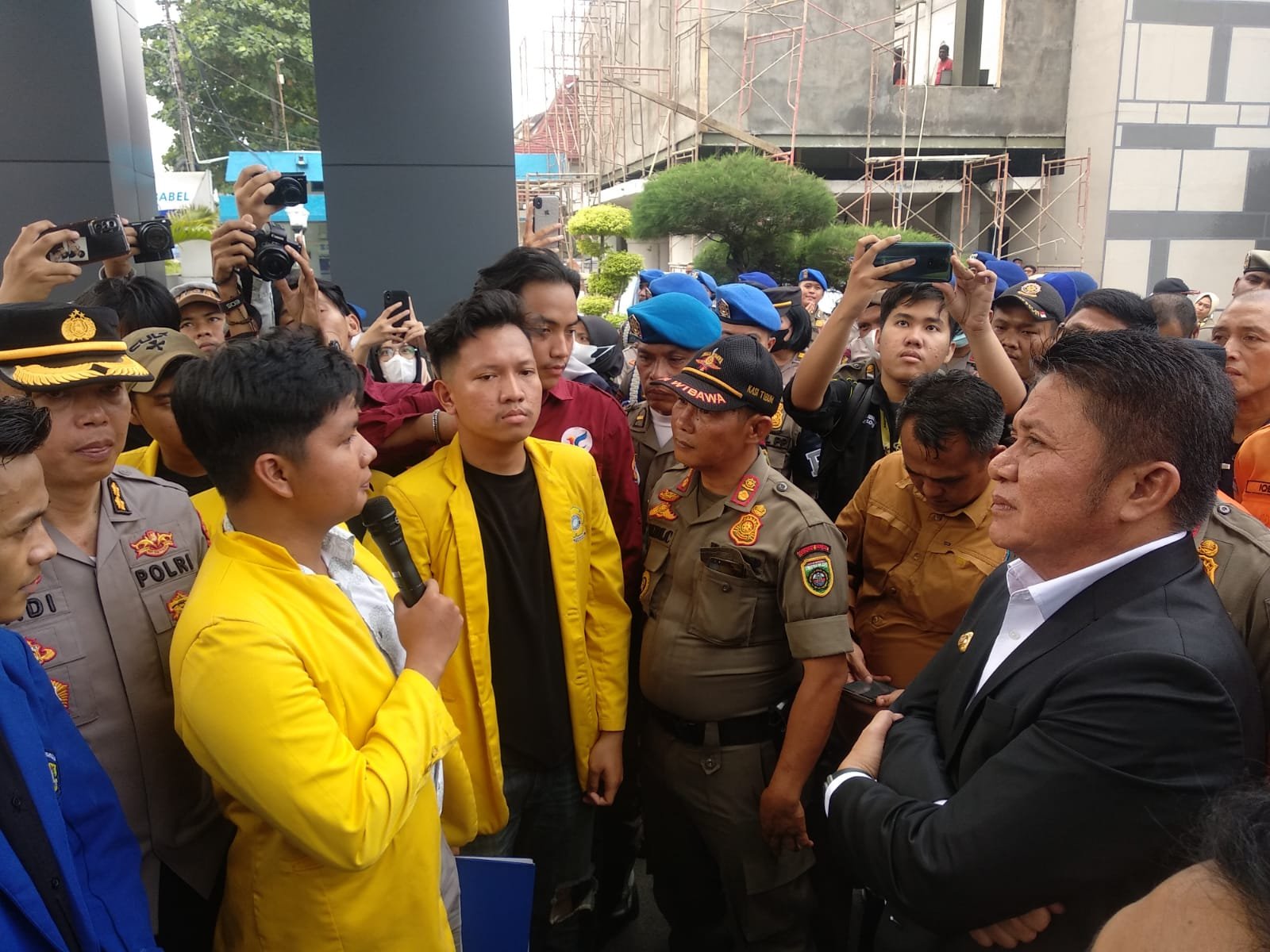 MATTANEWS.CO, PALEMBANG – Ratusan mahasiswa menggeruduk Kantor Gubernur Sumatera Selatan (Sumsel), Kamis (21/9). Mereka menuntut Pemprov Sumsel lebih aware terhadap kebakaran hutan dan lahan (Karhutla) yang selalu terjadi setiap tahun. Bahkan, Karhutla tahun ini semakin parah karena musim kemarau yang panjang.