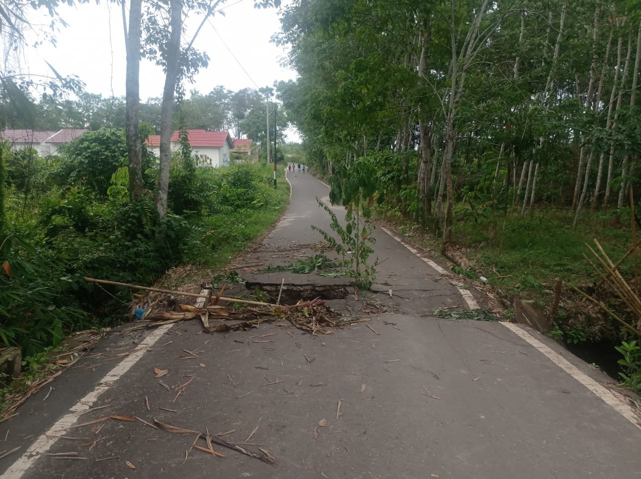 Amblasnya gorong-gorong yang terjadi pada beberapa hari yang lalu banyak timbul dugaan yang diakibatkan karena tergerus sebab dihantam banjir dan juga diindikasikan karena mobilitas kendaraan truk mau pun mobil molen cor beton yang melintas.