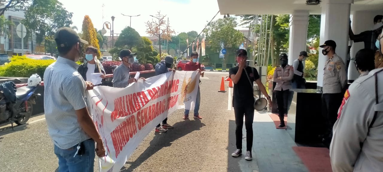 MATTANEWS.CO, PALEMBANG – Puluhan massa yang tergabung dari Gerakan Pemuda Kerakyatan (GPK) Sumatera Selatan (Sumsel) menggelar aksi unjuk rasa (unras) terkait dana hibah tahun 2017, di kantor Wali Kota Palembang, Senin (19/7/2021).