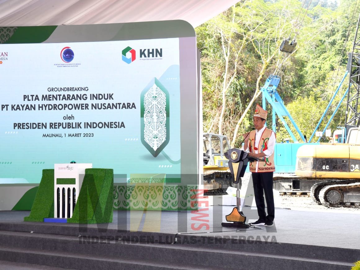 Demikian disampaikan Presiden Jokowi dalam sambutannya saat melakukan peletakan batu pertama (groundbreaking) PLTA Mentarang Induk PT Kayan Hydropower Nusantara, di Kabupaten Malinau, Provinsi Kalimantan Utara, pada Rabu (1/3/2023).