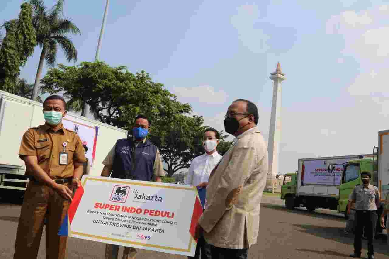 Setelah meresmikan Layanan Vaksinasi Keliling, Gubernur Anies juga menyaksikan penyerahan bantuan dari PT Lion Super Indo, yang menyerahkan bantuan berupa paket sembako dan tabung oksigen dalam rangka dukungan membantu penanganan Covid-19 di DKI Jakarta.