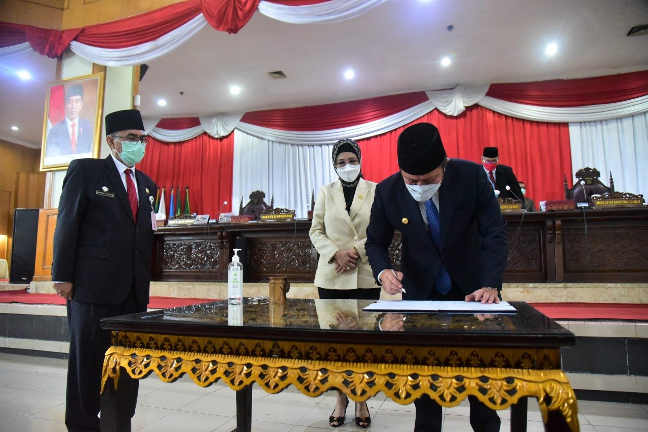 Bersama Ketua DPRD Provinsi Sumsel Hj. R.A. Anita Noeringhati, Gubernur Herman Deru juga sekaligus menandatangani persetujuan tentang CDP Kabupaten Kikim Area.