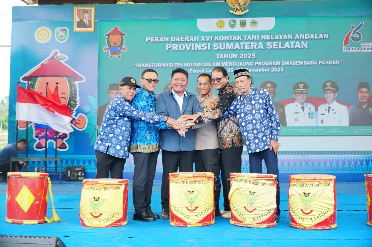 MATTANEWS.CO, EMPAT LAWANG – Pekan Daerah XVI Kontak Tani Nelayan Andalan (PEDA XVI KTNA) Sumatera Selatan tahun ini menjadi momentum penting bagi para pelaku pertanian untuk menunjukkan inovasi sekaligus memperkuat posisi Sumsel sebagai lumbung pangan nasional. Hal itu disampaikan Gubernur Sumsel, Dr. H. Herman Deru saat menghadiri langsung pembukaan kegiatan yang digelar di Lapangan Pulo Mas, Kabupaten Empat Lawang, Kamis (6/11/2025).