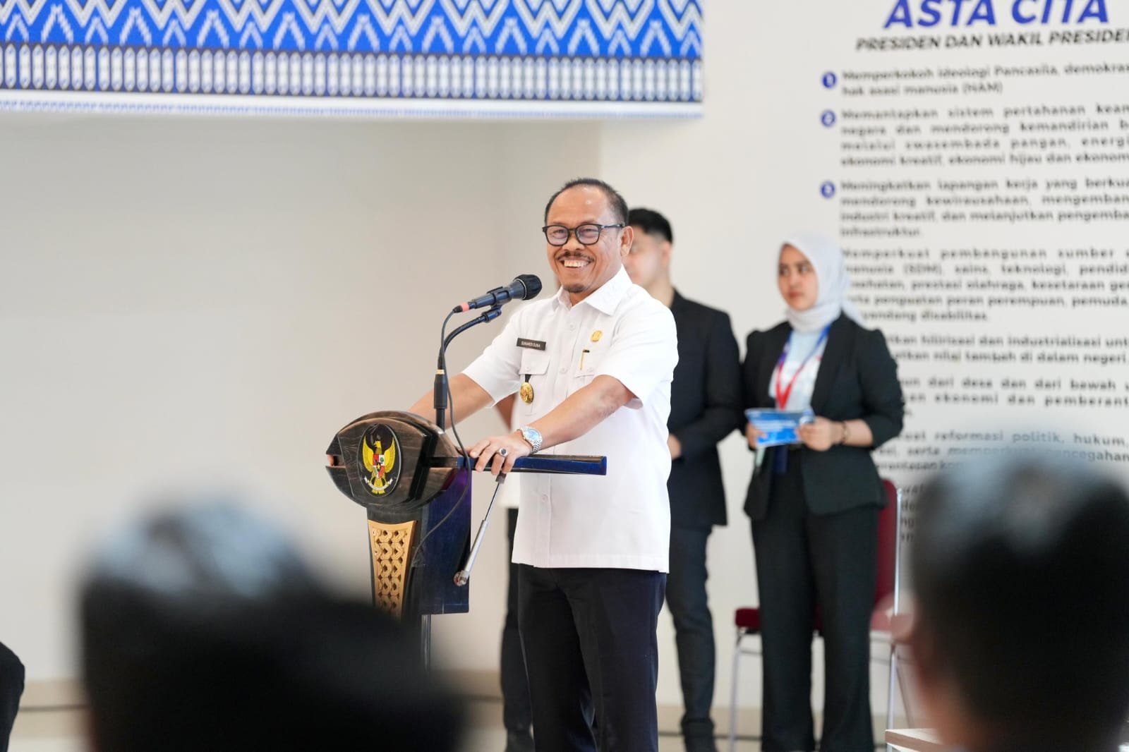 MATTANEWS.CO, SULBAR – Gubernur Sulawesi Barat, Suhardi Duka resmi menutup pelatihan Usaha Mikro, Kecil, dan Menengah (UMKM) literasi keuangan dan marketing berbasis Artificial Intelligence (AI) hasil kolaborasi Bank Tabungan Negara (BTN – KC) Mamuju.