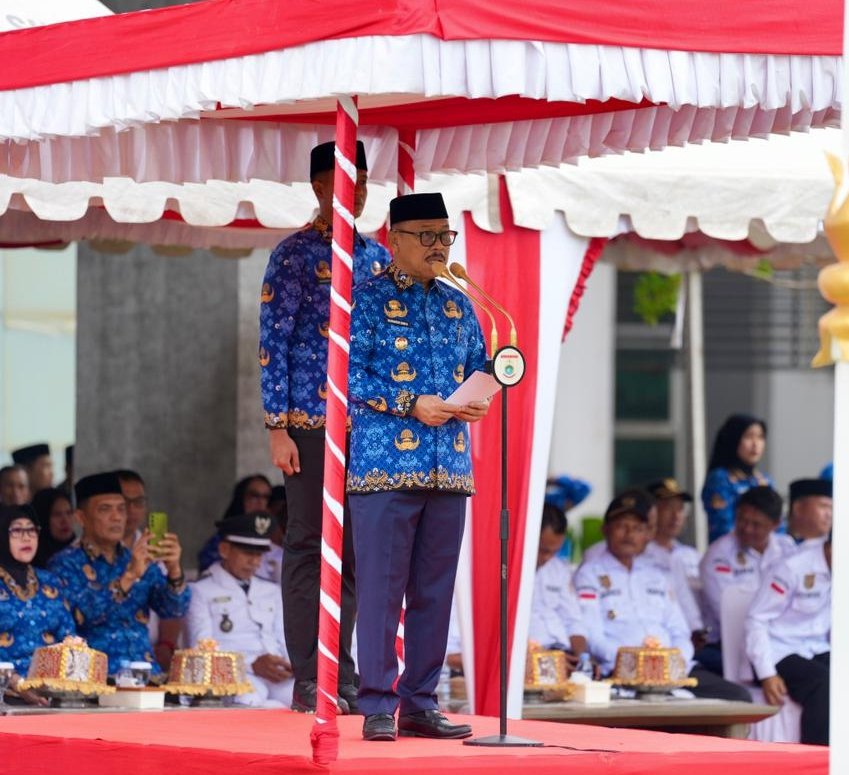 “Kalau kita mampu menurunkan angka kemiskinan satu persen, itu bukan hanya prestasi pemerintahan, tapi juga bernilai ibadah,” ucap Suhardi Duka disambut tepuk tangan peserta upacara.