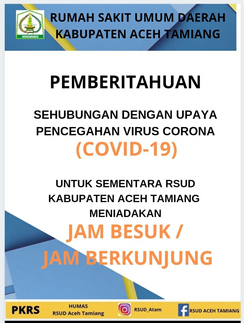 Menyikapi ikhwal tersebut, Direktur RSUD Aceh Tamiang, dr Andika Putra yang dihubungi Wartawan, membenarkan ikhwal peniadaan jam besuk dan berkunjung. Kebijakan ini diambil diambil dari pasien Covid 19 yang di rawat di RSUD.