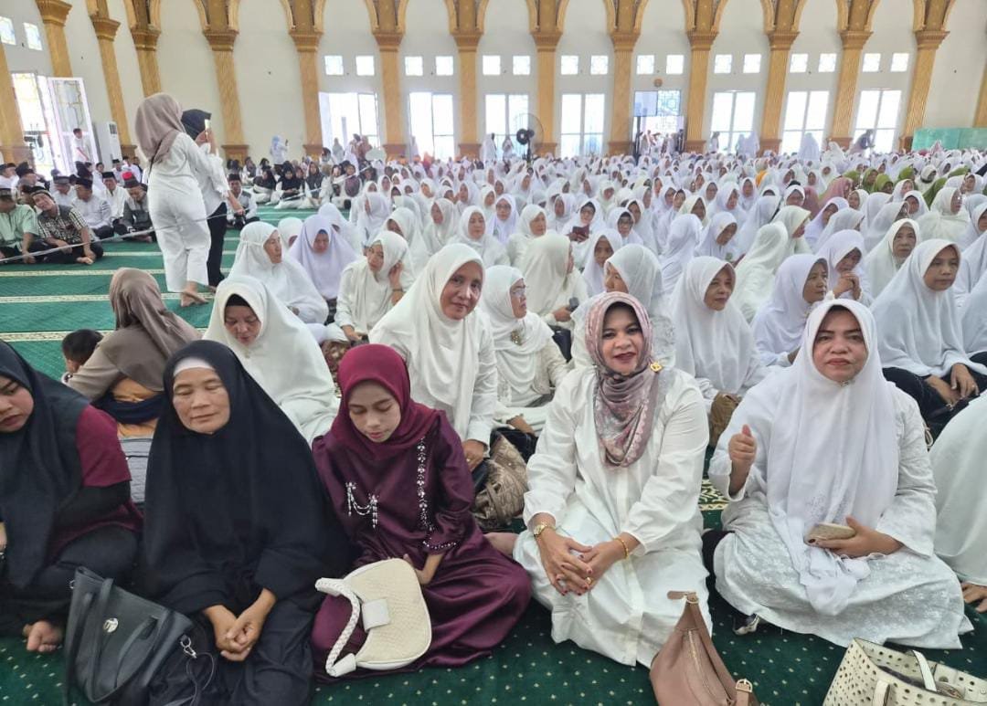 MATTANEWS.CO, PRABUMULIH — Wali Kota Prabumulih H. Arlan dan Ketua TP PKK Prabumulih Hj. Linda Arlan juga Wakil Walikota Franky Nasril dan istri berbaur bersama ribuan warga dalam rangka Ruwahan Akbar sambut Ramadhan 1447 Hijriah di Masjid Islamic Center (IC) Jalan Lingkar Kota di Kelurahan Muara Dua Kecamatan Prabumulih Timur, Rabu (11/2/2026) sore.