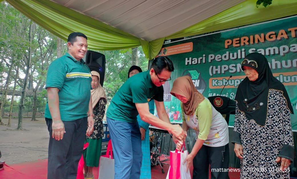 MATTANEWS.CO,TULUNGAGUNG – Pemerintah Kabupaten Tulungagung melalui Dinas Lingkungan Hidup menggelar peringatan Hari Peduli Sampah Nasional (HPSN) 2024 di Hutan kota Desa Moyoketen, Kecamatan Boyolangu setempat, Jumat (1/3/2024).