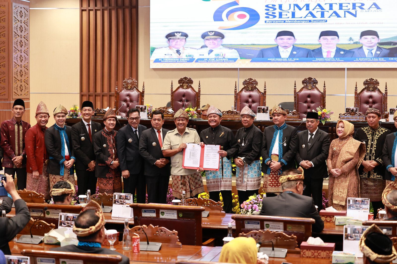 MATTANEWS.CO, PALEMBANG – Wali Kota Palembang Ratu Dewa menghadiri rapat paripurna istimewa peringatan Hari Ulang Tahun (HUT) Provinsi Sumatera Selatan ke-79 yang digelar di gedung DPRD Sumsel, Kamis (15/5/2025).