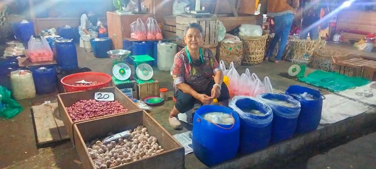 Ibu Rudi salah satu pedagang, yang berjualan di pasar Ritel Jakabaring itu, tidak hanya menjual tahu, dia juga menjual bawang merah dan bawang putih.