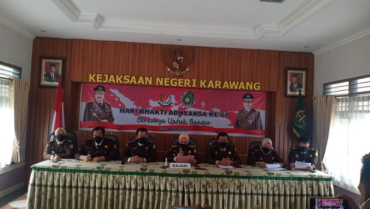 MATTANEWS.CO,KARAWANG – Hari Bhakti Adhyaksa ke 61, Kejaksaan Negeri (Kejari) Kabupaten Karawang digelar secara virtual.Bertempat di aula kantor kejaksaan Negeri Karawang, Kamis (22/07/2021).