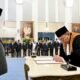 Pelantikan ini ditandai dengan pengucapan sumpah jabatan menurut agama Islam, yang dipandu langsung oleh Presiden Prabowo Subianto. “Bahwa saya akan setia kepada Undang-Undang Dasar Negara Republik Indonesia Tahun 1945 serta akan menjalankan segala peraturan perundang-undangan dengan selurus-lurusnya, demi darmabakti saya kepada bangsa dan negara,” ujar Presiden Prabowo saat mendiktekan penggalan sumpah jabatan kepada pejabat yang dilantik.