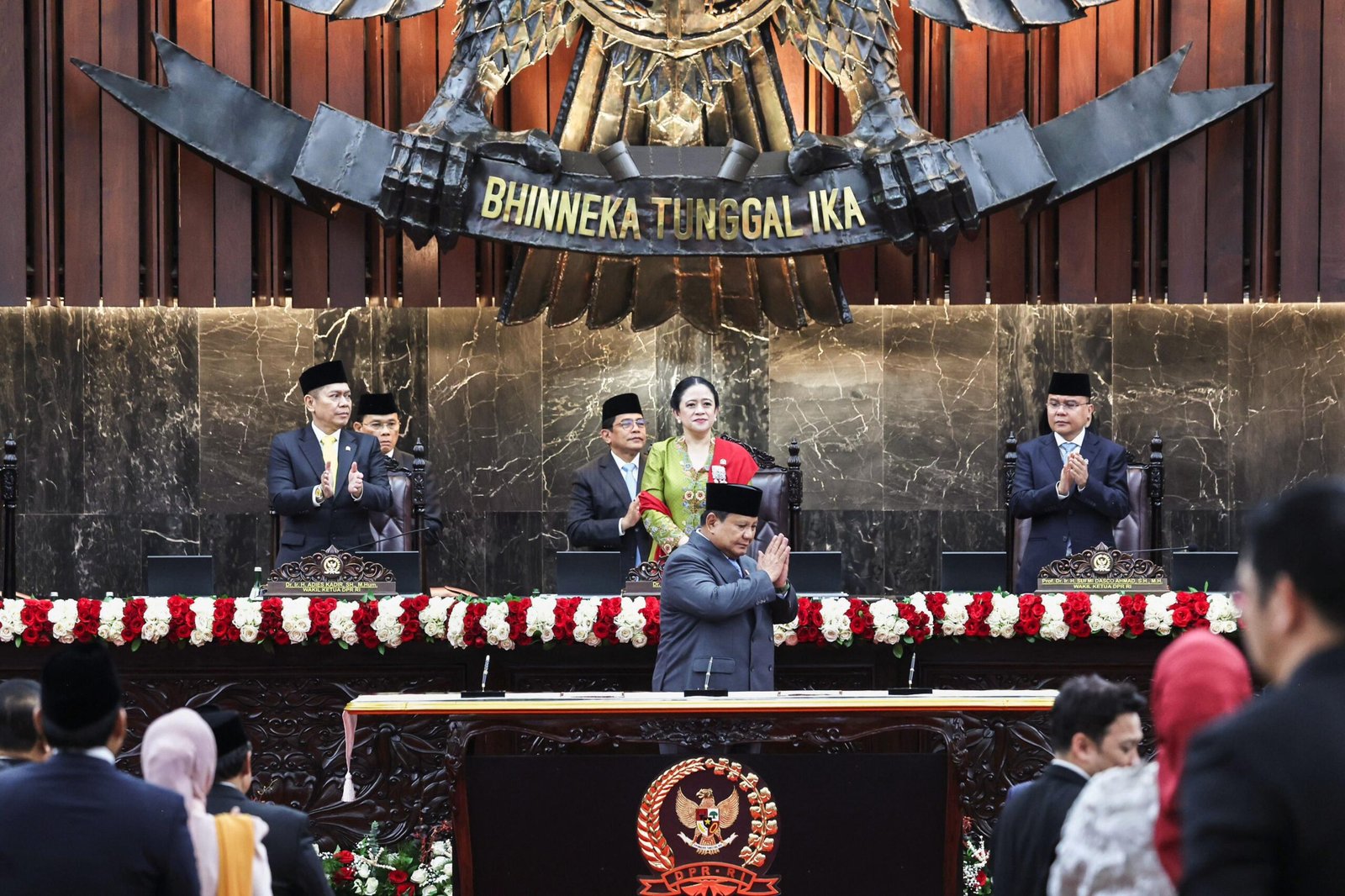 Sidang tahunan MPR dan sidang bersama DPR/DPD RI tampak dihadiri oleh Presiden Ke-6 RI Susilo Bambang Yudhoyono, Presiden Ke-7 RI Joko Widodo, Wakil Presiden Ke-6 RI Try Sutrisno, Wakil Presiden Ke-10 dan Ke-12 RI Jusuf Kalla, Wakil Presiden Ke-11 RI Boediono, dan Wakil Presiden Ke-13 RI Ma’ruf Amin. Selain itu, tampak hadir pula sejumlah Ketua Parlemen ASEAN, sejumlah duta besar negara sahabat, para pimpinan lembaga negara, serta para menteri Kabinet Merah Putih. (*)