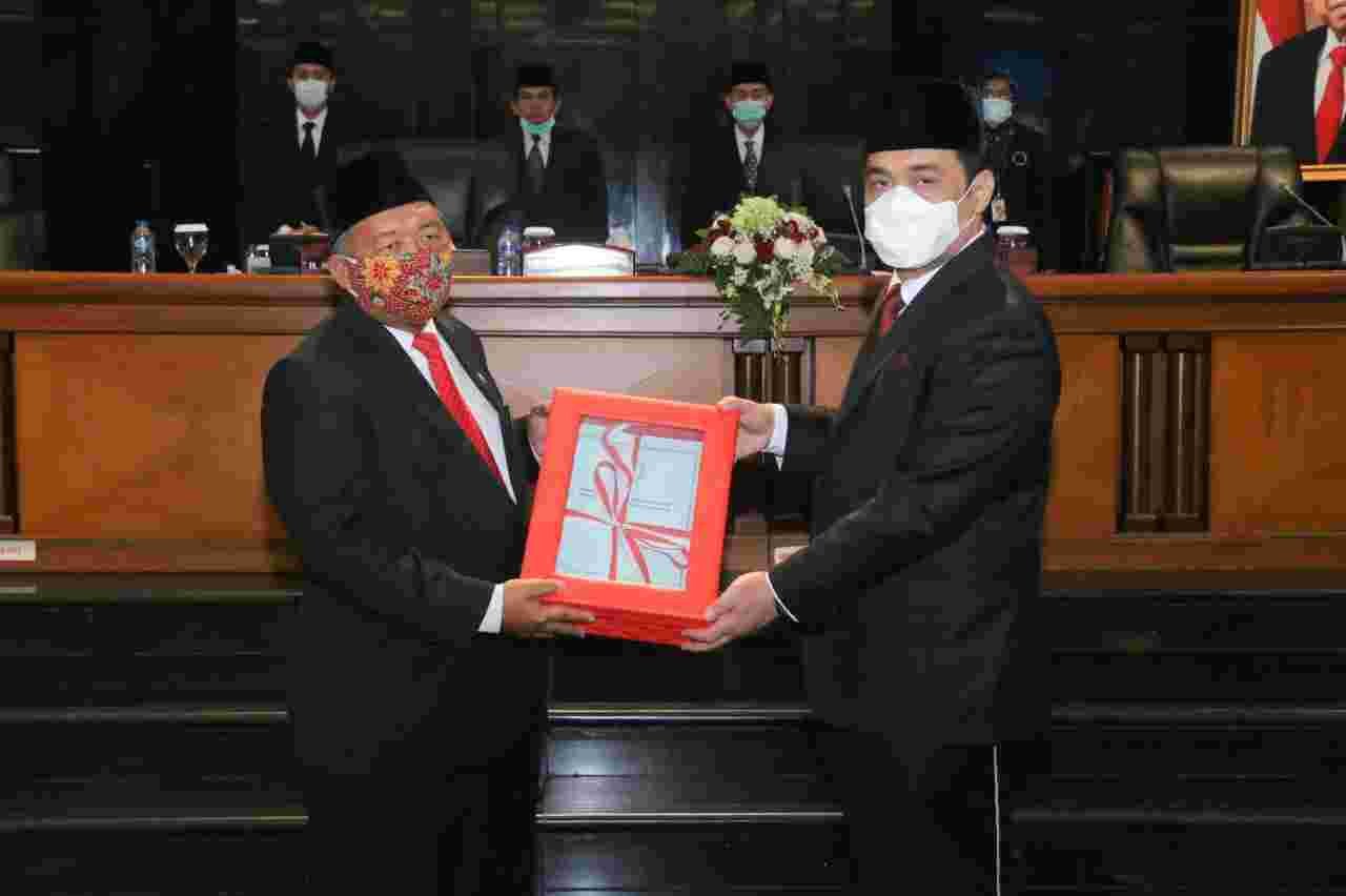 Dalam kesempatan ini, Wagub Ariza turut menyampaikan apresiasi kepada para Pimpinan dan Anggota DPRD DKI Jakarta yang hadir dalam penyampaian Raperda Provinsi DKI Jakarta. Kemudian, Wagub Ariza menyerahkan secara simbolis empat Raperda tersebut kepada Wakil Ketua DPRD DKI Jakarta, Abdurrahman Suhaimi.