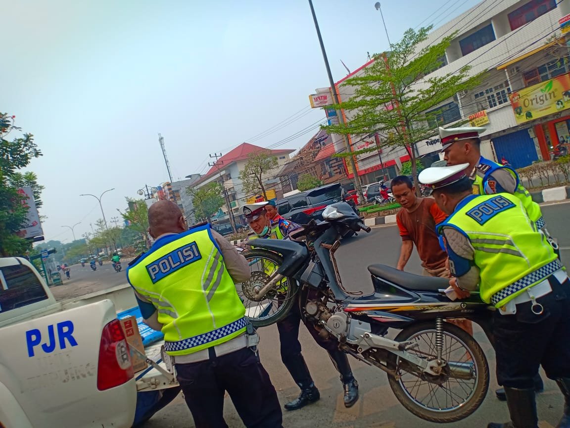 Pantauan Mattanews.co, razia yang di gelar jajaran Ditlantas Polda Sumsel di mulai pada pukul 09.00 WIB hingga pukul 11.00 WIB. Namun, salah satu pengendara kabur dan meninggalkan sepeda motornya Merk Smash warna hitam dengan nopol BG 4407 TB, diduga penggendara kabur karena tidak melengkapi surat-surat kendaraanya.
