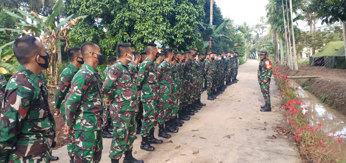 Usai melaksanakan apel pagi, berdoa dan meneriakkan yel-yel tanda penyemangat. Komandan SSK Satgas TMMD Kodim 0418 Palembang, Kapten Inf Winarto langsung mengarahkan satgas, menuju sasaran pengerjaan fisik masing-masing.
