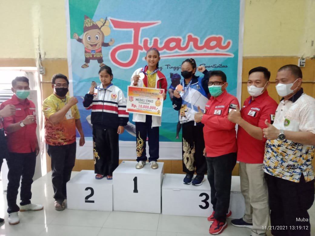 “Medali emas wushu disumbangkan oleh Kgs Bachrul Khotami pada nomor Taolu Chang Quan ( Seni ). Sedangkan 1 medali emas lainnya disumbangkan Naurah Dheah Anindiyah di kelas Nancen Quen,” ucapnya.
